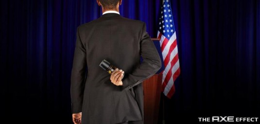 Ultima ma sicuramente non per grandezza la campagna elettorale degli USA ha visto vincere Barack Obama su Mitt Romney. La trovata geniale di AXE South Africa è stata un immagine di Obama che nasconde dietro di sé un deodorante del noto brand, svelando che il successo dietro al 55% dei consensi da parte dell’elettorato femminile è proprio l’utilizzo di quel prodotto.